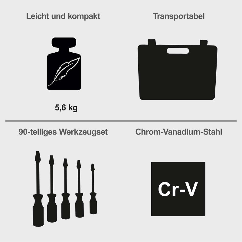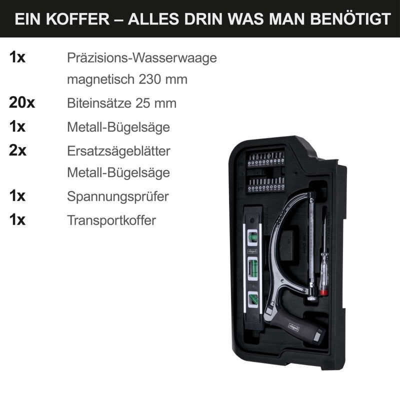 Scheppach C-BSB74/1BE-X mobilna radionica uključuje snažnu aku bušilicu-odvijač s momentom od 50 Nm, 2,0 Ah baterijom, setom svrdla i bitova te koferom za pohranu. Kompletno rješenje za montažne radove, servise i radionice u pokretu.