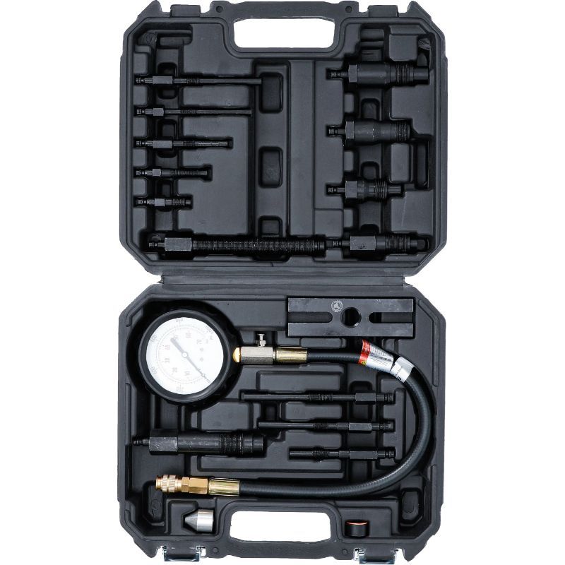 Ovaj mjerač služi za provjeru stanja kompresije na dizelskim motorima i otkrivanje problema poput istrošenih klipnih prstenova, neispravnih ventila ili propuštanja na brtvi glave motora. U praksi je koristan kod otežanog paljenja, neravnomjernog rada motora, gubitka snage i povećane potrošnje ulja.