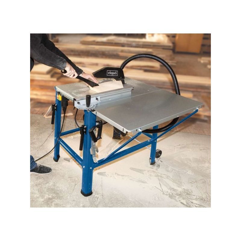 Pila ima snažan motor od 2200 W koji osigurava dovoljno snage za rezanje masivnog i pločastog drva.