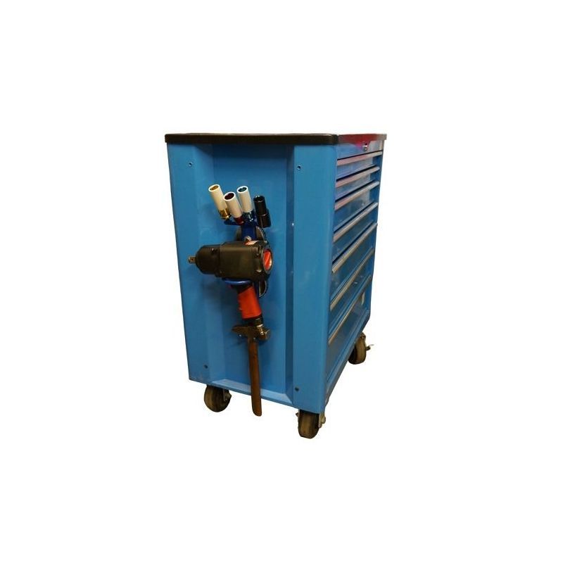 Magnetski držač za pneumatski udarni pištolj s otvorom promjera 75 mm, također omogućuje vješanje 4 nasadna ključa i račve. Gumirani magnet sprječava ogrebotine i klizanje.