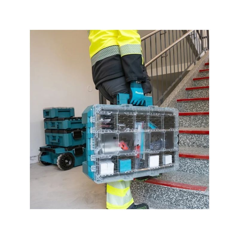 - dimenzije 562 x 387 x 163 mm, volumen 18,41 litara, težina 4,8 kg i maksimalna nosivost 22,7 kg čine ovaj organizator idealnim za profesionalnu uporabu i gradilišta