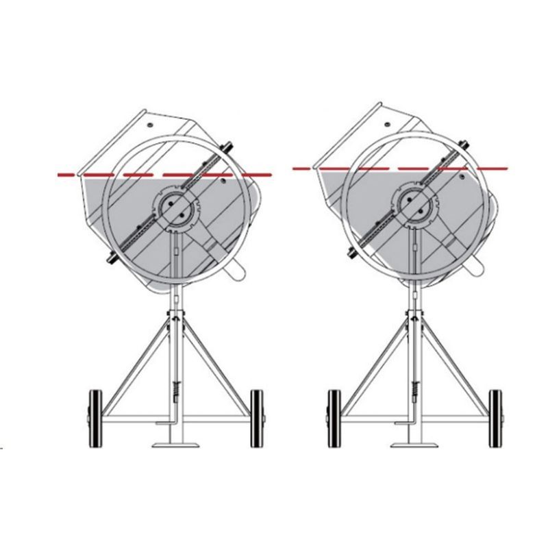 mješalica je opremljena sustavom za brzo podešavanje nagiba bubnja, što omogućuje jednostavno pražnjenje i doziranje materijala