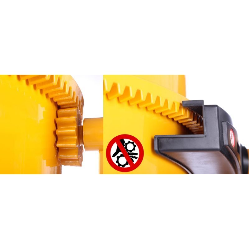 zahvaljujući snažnom elektromotoru od 650 W i lancima te prstenu od lijevanog željeza, ova mješalica pruža pouzdan rad čak i u zahtjevnim građevinskim uvjetima