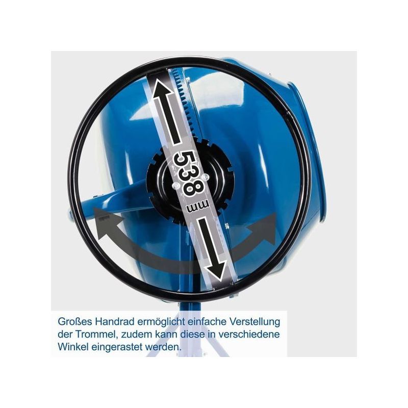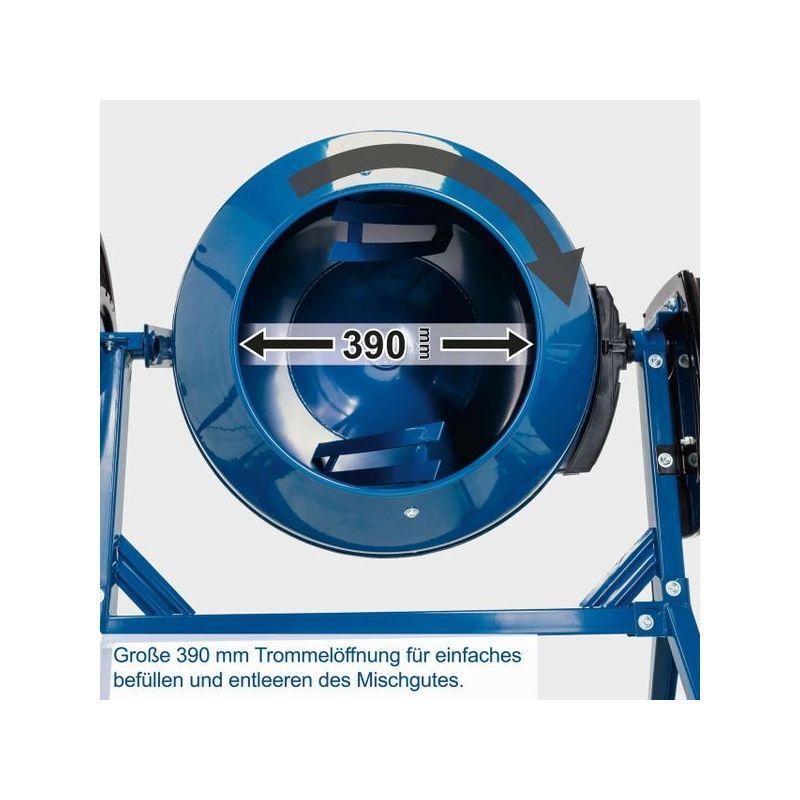 Miješalica ima bubanj zapremine 180 litara, što je idealno za pripremu većih količina betona i morta.