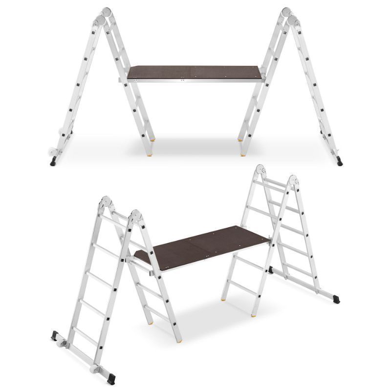 Skela omogućuje radnu visinu do približno 4 metra, što je dovoljno za većinu unutarnjih radova u prostorima poput hala, radionica, skladišta ili stambenih objekata.
