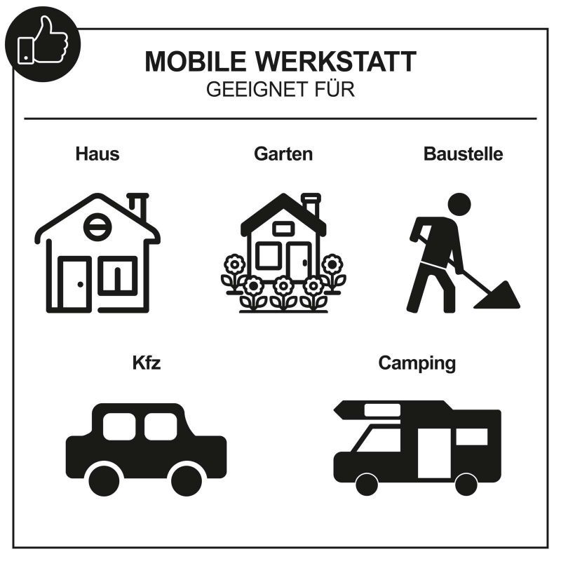 • Mobilna radionica Scheppach C-BSB74/1BE-X idealna je za servisne tehničare, montažere, električare i majstore koji žele maksimalnu funkcionalnost i učinkovitost u kompaktnom formatu.