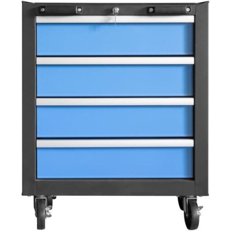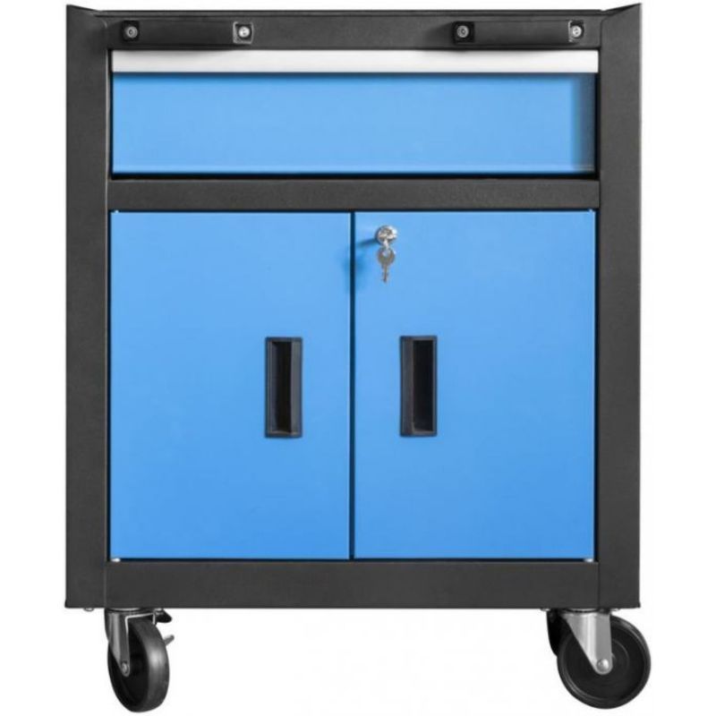 Radni stol, dva kolica za alat, visoki ormar, dva zidna ormara, perforirana stijenka za alat s 12 kuka.