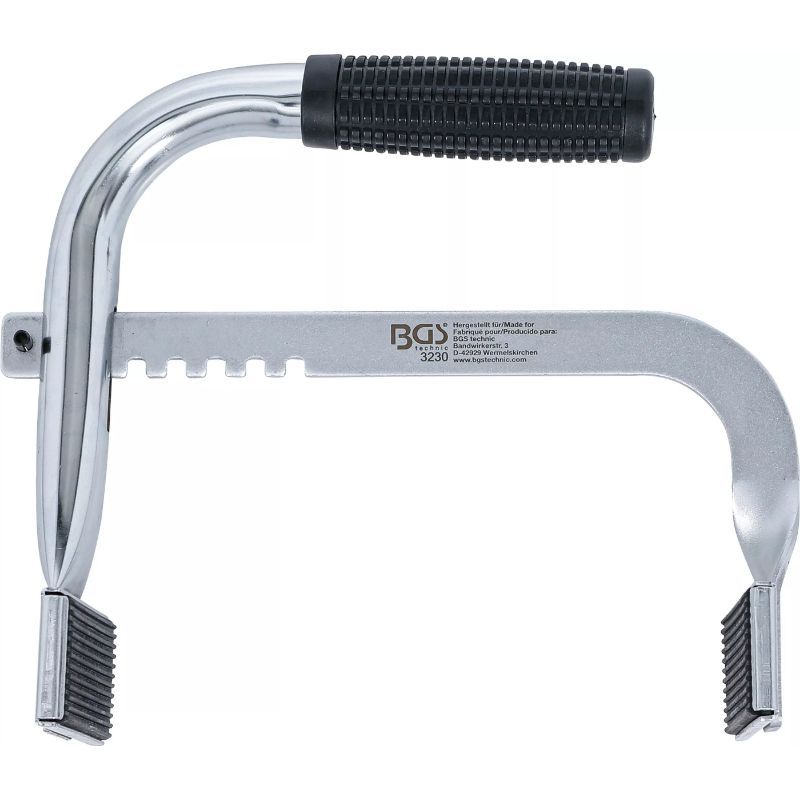 konstrukcija omogućuje podešavanje širine zahvata između 110 mm i 180 mm, što omogućuje kompatibilnost s većinom standardnih akumulatora u servisnim i radionničkim uvjetima