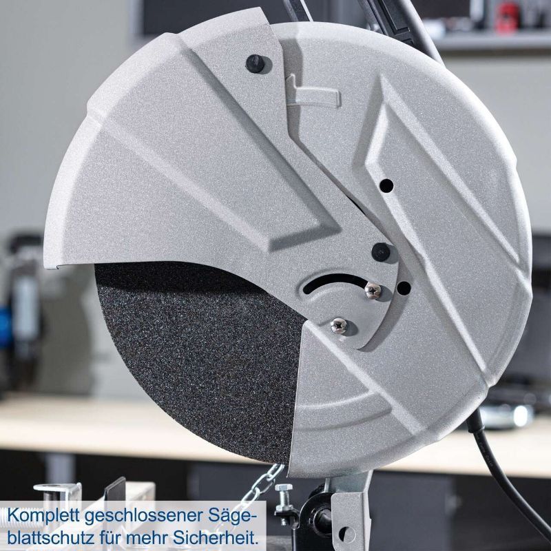 Stolna kružna pila s reznom pločom od 355 mm i snažnim motorom od 2600 W omogućuje precizne rezove u metalu. Kut nagiba do 45° i zatvorena zaštita osiguravaju siguran rad.