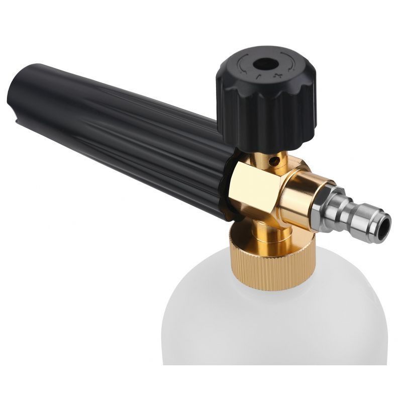 - zahvaljujući spremniku kapaciteta 1 litru i setu od 7 različitih mlaznica, korisnik može precizno odabrati količinu i gustoću pjene ovisno o potrebi — od blagih sapunica za osjetljive površine do guste pjene za tvrdokornu prljavštinu