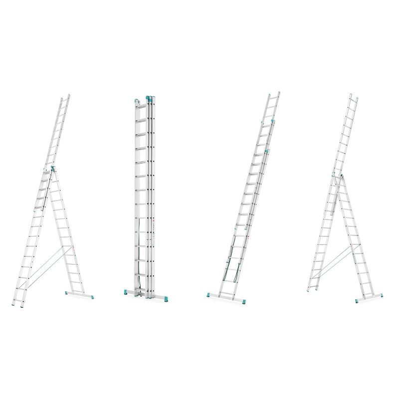 Da se, zahvaljujući trodijelnoj konstrukciji, mogu koristiti kao samostojeće, naslonjene ili potpuno razvučene ljestve.