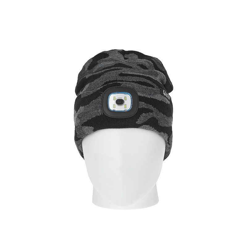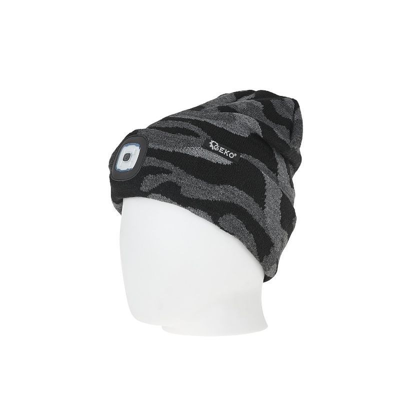 Zimska kapa s punjivom LED lampom od 150 lumena, mekog akrilnog materijala i modernog vojno-kamuflažnog uzorka, idealna za aktivnosti na otvorenom.