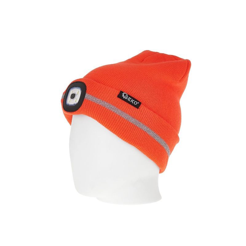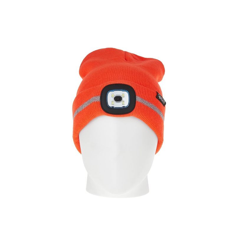 Zimska kapa u narančastoj boji s reflektirajućom trakom i punjivim LED svjetlom 150 lumena, univerzalne veličine, za maksimalnu vidljivost i sigurnost tijekom aktivnosti na otvorenom.