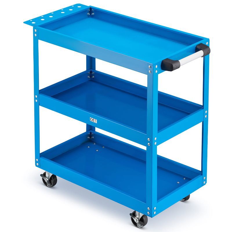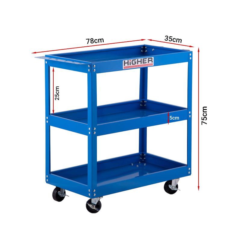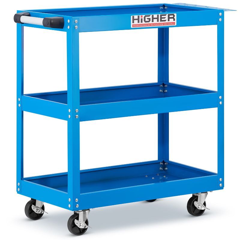 • čvrsta čelična konstrukcija s tri duboke police dimenzija 65 × 35 cm omogućuje organizirano odlaganje i transport alata, dijelova i opreme