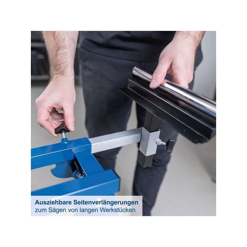 - podesiva duljina stola (935–1940 mm) omogućuje jednostavno prilagođavanje različitim alatima i radnim prostorima. Stol je univerzalan i kompatibilan s većinom proizvođača pila, ali može poslužiti i za druge vrste alata