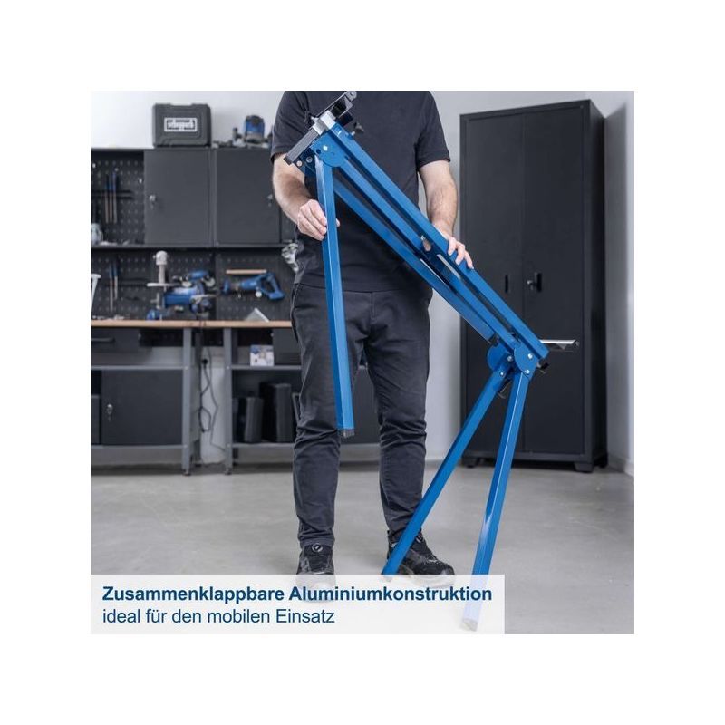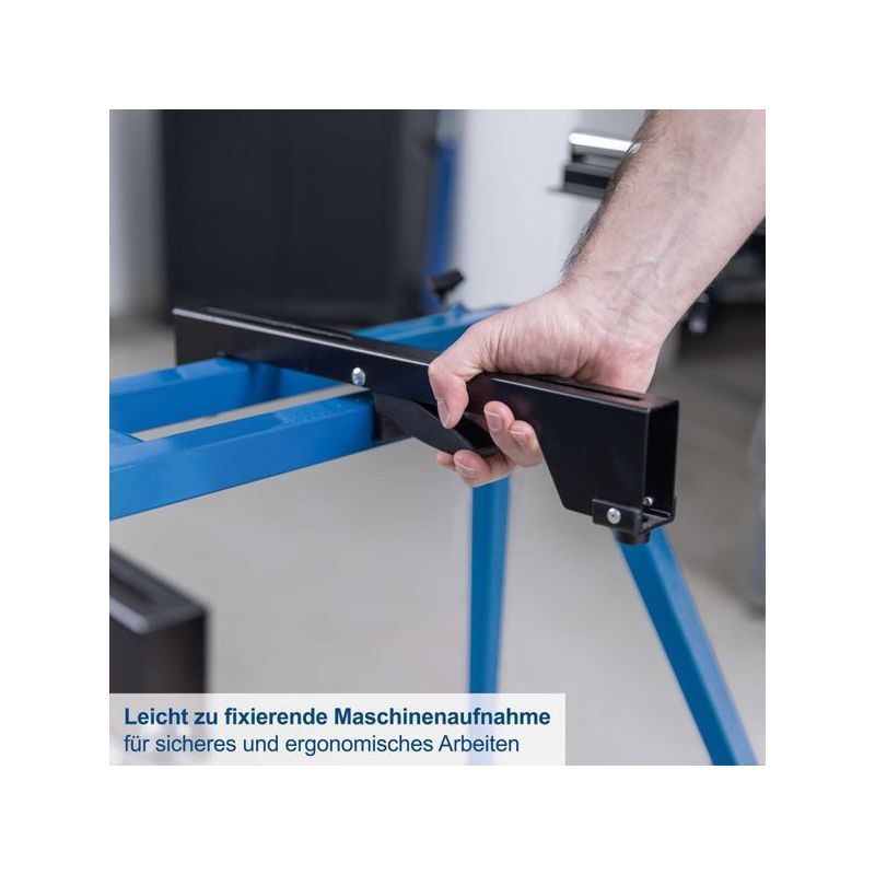 - namjenski klinovi omogućuju brzo otkopčavanje i pričvršćivanje pile, čime se štedi vrijeme i povećava efikasnost rada. S težinom od samo 9,8 kg, stol je lagan za premještanje, ali i dovoljno stabilan za profesionalnu i kućnu upotrebu