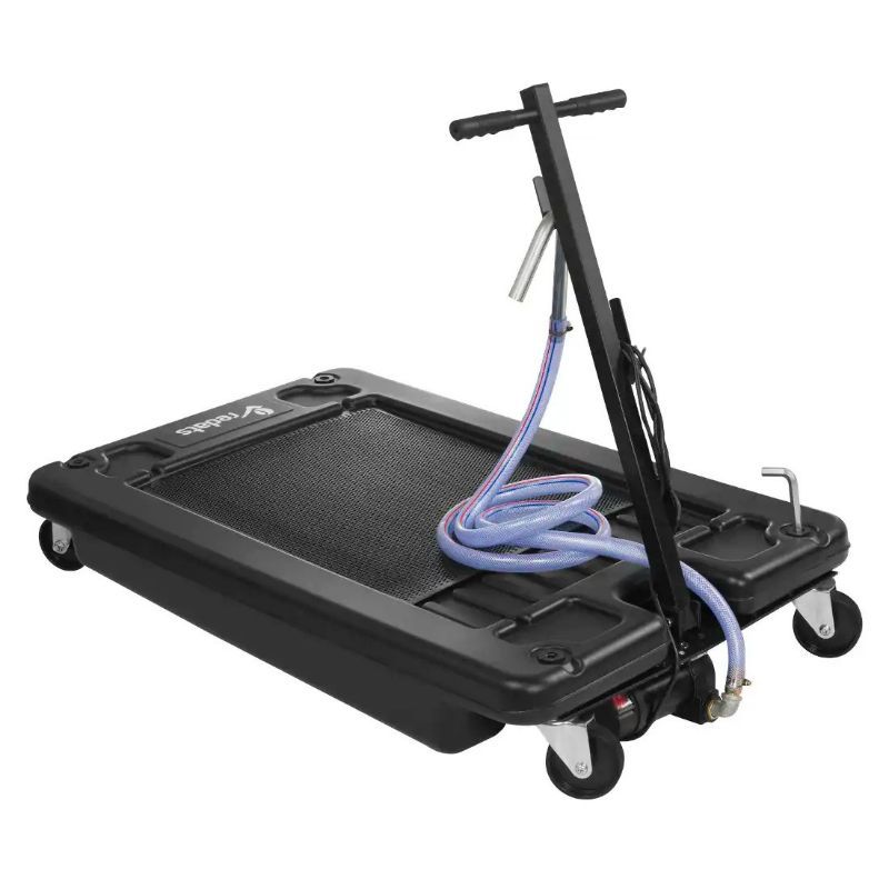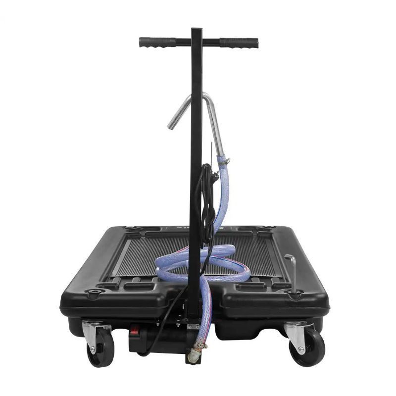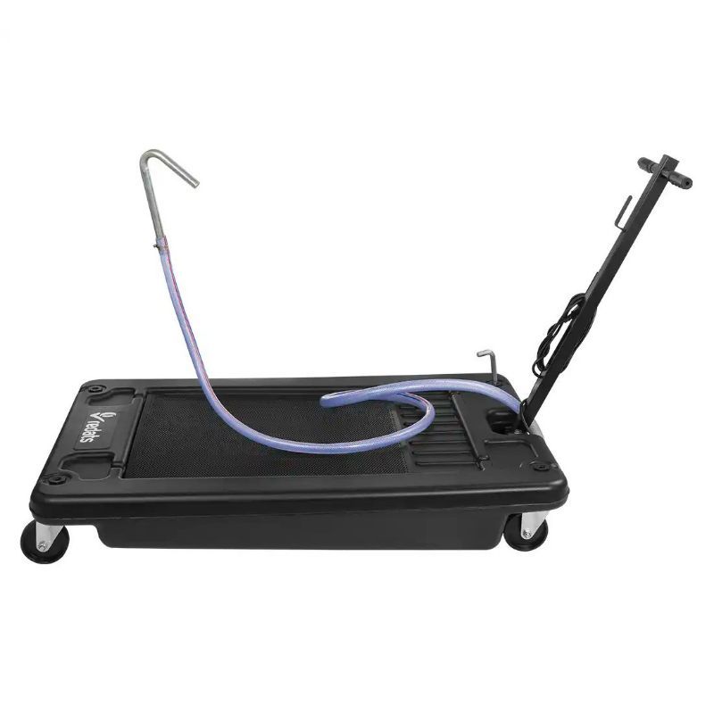 Široka posuda za ispuštanje s podesivom visinom omogućuje precizno pozicioniranje ispod vozila, čime se sprječava prolijevanje i onečišćenje radnog prostora.