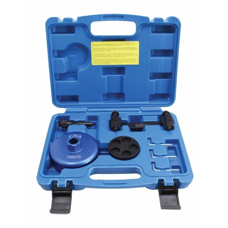 - set uključuje klin za poravnanje radilice, alat za blokiranje bregaste osovine, klin za blokiranje remenice zatezača, alat za držanje podešivača bregaste osovine te adapter za vijke remenice radilice