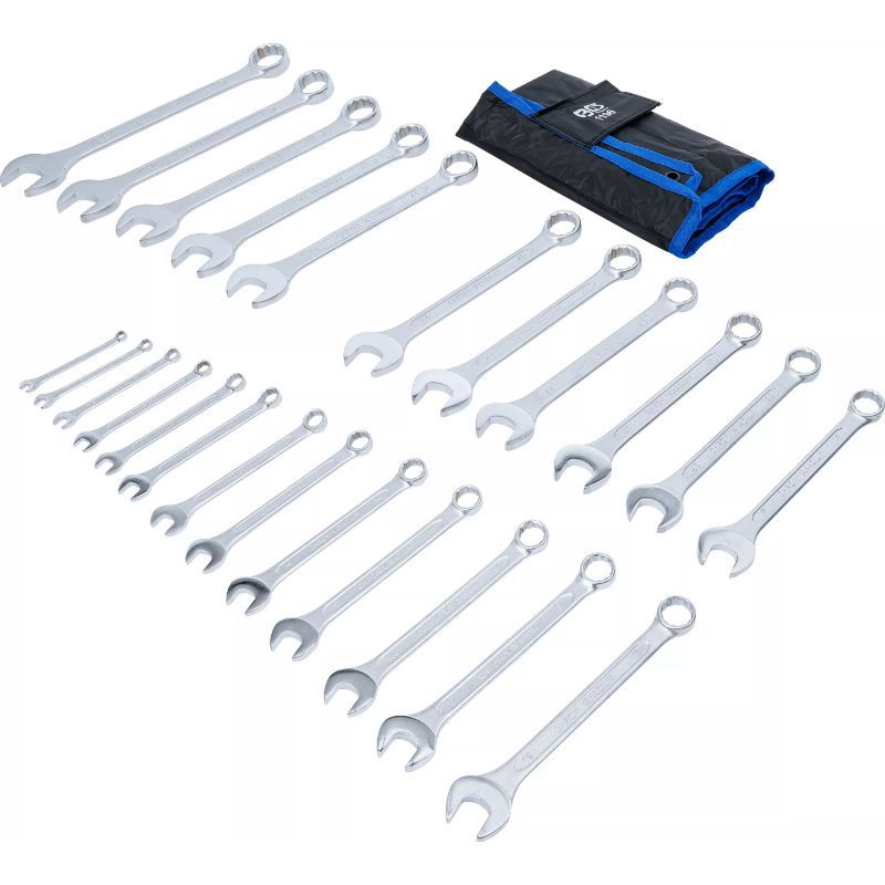 - set kombiniranih ključeva obuhvaća 25 ključeva u veličinama od 6 mm do 32 mm, što pokriva najčešće metričke dimenzije za servisne i radioničke primjene