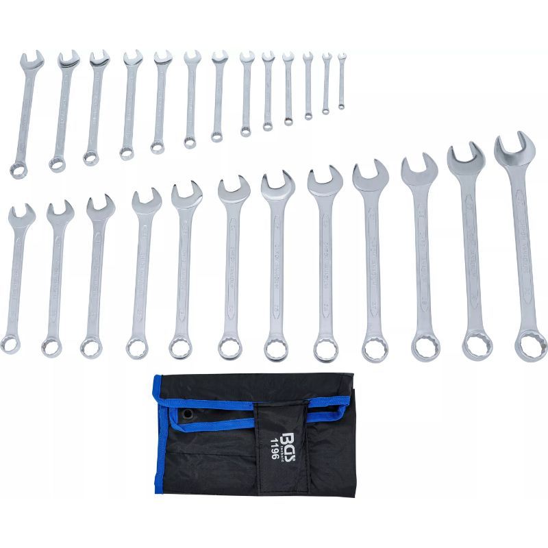 1196 je set okasto-viličastih ključeva (kombinirani ključevi) u rasponu 6–32 mm, ukupno 25 kom. Namijenjen je općim servisnim radovima i montaži gdje se najčešće rade metrički šesterokutni vijci i matice, a treba pokriti i male i veće dimenzije u jednoj roli/torbici.