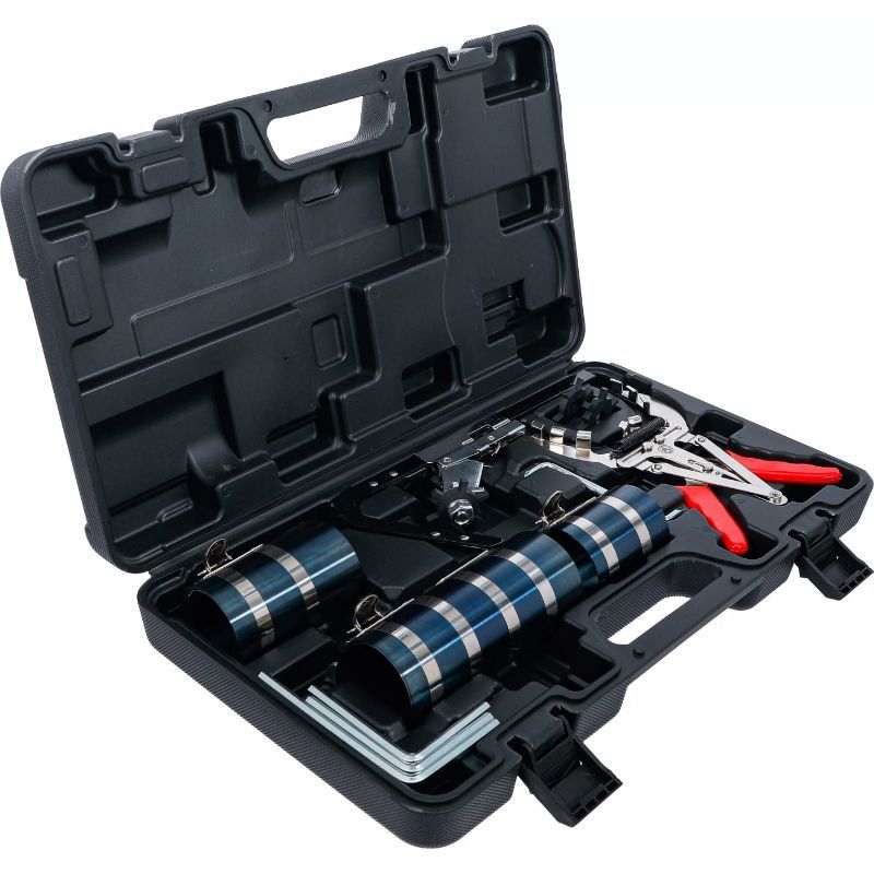 Set je namijenjen popravku motora pri radu s klipovima i klipnim prstenovima. Koristi se za čišćenje žljebova klipnih prstenova, pravilno sastavljanje (montažu) prstenova na klip te prednaprezanje/kompresiju prstenova prilikom ugradnje klipa u cilindar. Operativno: smanjuje rizik loma prstena, oštećenja cilindra i “krive montaže” koja završava ponovnim rastavljanjem.