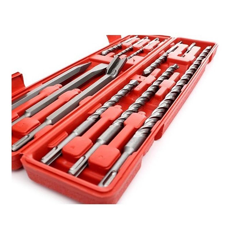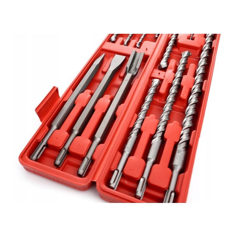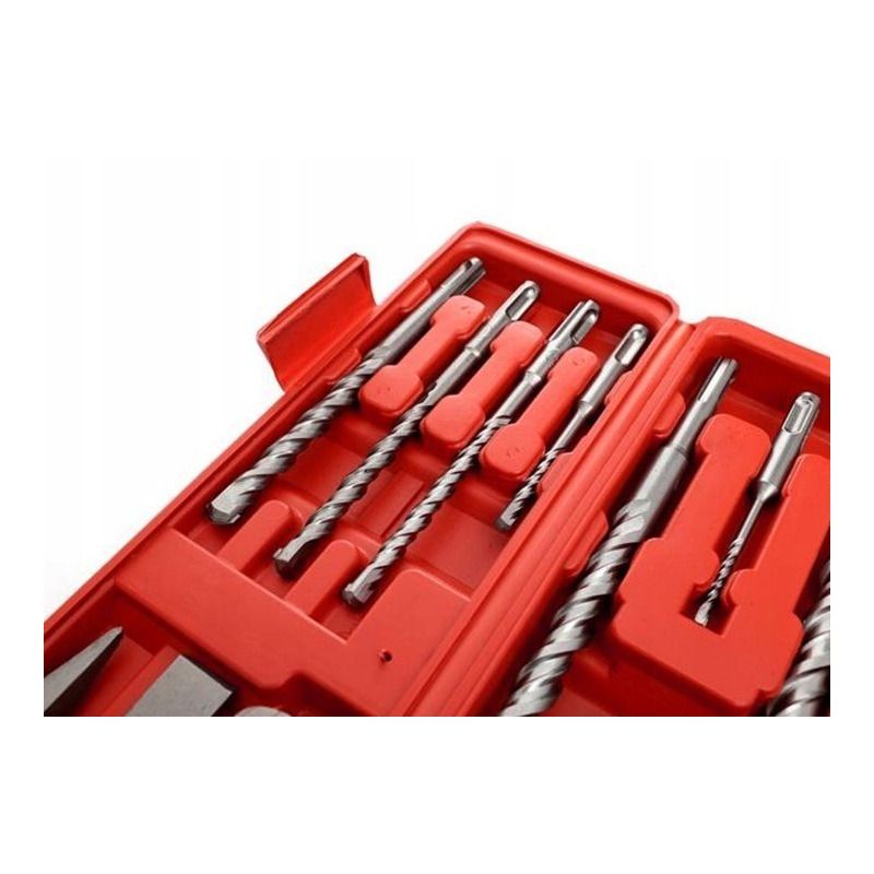 SDS Plus je za lagane i srednje čekić bušilice (do cca 4–5 kg). SDS Max je za teške radove i veće energije udara. Ovaj set je isključivo SDS Plus – ne odgovara SDS Max alatima.