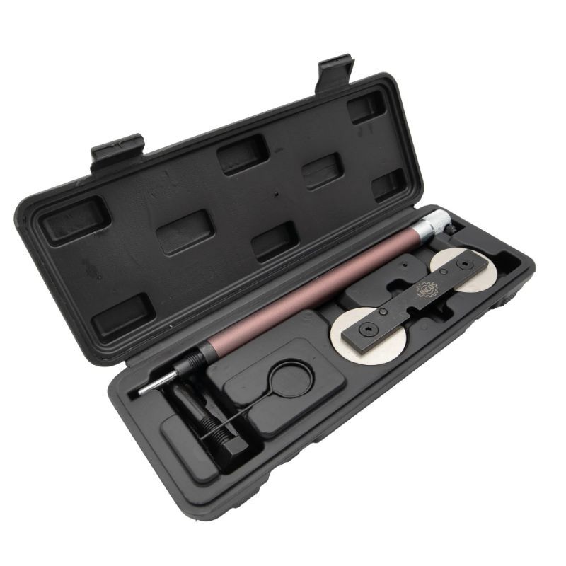 Služi za operacije na razvodu gdje trebate zaključati fazu motora i pravilno zategnuti remen: uključuje zatezač zupčastog remena, mjerač gornje mrtve točke (TDC) i alat za blokadu bregaste osovine. Koristi se kod zamjene zupčastog remena/zatezača i pri servisima gdje je precizno pozicioniranje faze kritično.