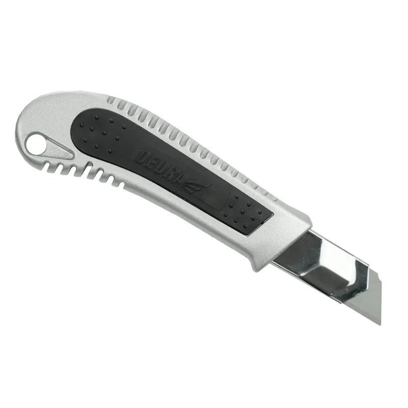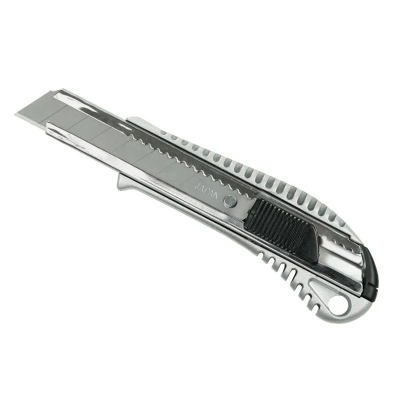 Metalni skalpel širine oštrice 18 mm s jednom uključenom oštricom i ukupnom težinom 20 g.