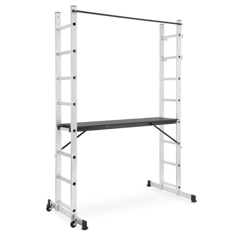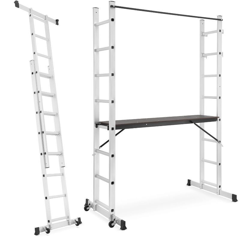 - ova 3-u-1 konstrukcija omogućuje korištenje u tri položaja – kao mini skelu, samostojeće ljestve i naslonjene ljestve, čime zamjenjuje nekoliko alata u jednom praktičnom proizvodu