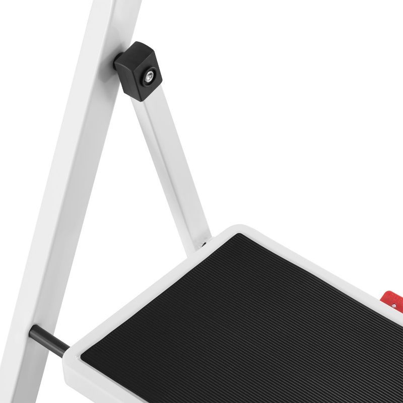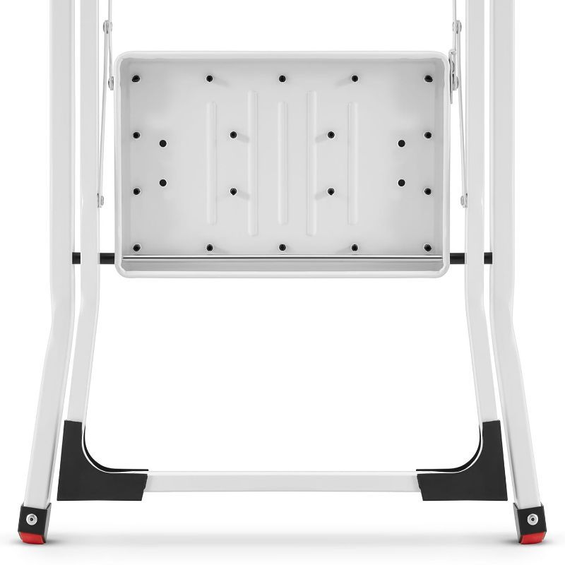 Stabilnost osigurava čelična konstrukcija s križnim ojačanjima te široke stepenice dimenzija 30 × 20 cm s protukliznom podlogom. Maksimalna nosivost iznosi 150 kg, što omogućuje sigurno korištenje za većinu korisnika i osnovni alat u ruci. Dodatnu sigurnost pružaju protuklizne nogice sa slojem prave gume i Safe Block sustav zaključavanja koji sprječava slučajno sklapanje tijekom rada.