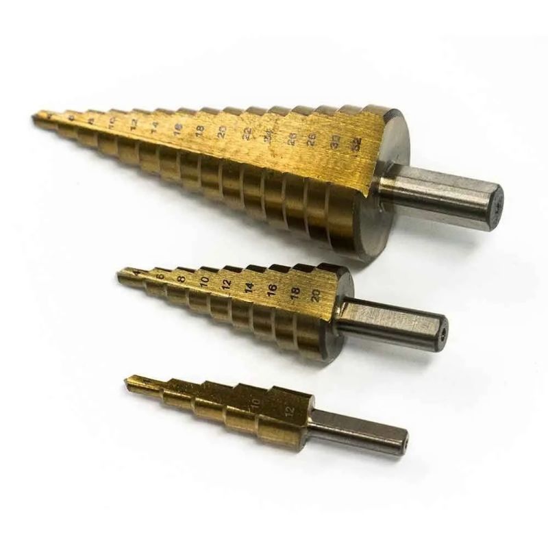 set stepenastih svrdala za izradu rupa različitih promjera bez česte izmjene alata