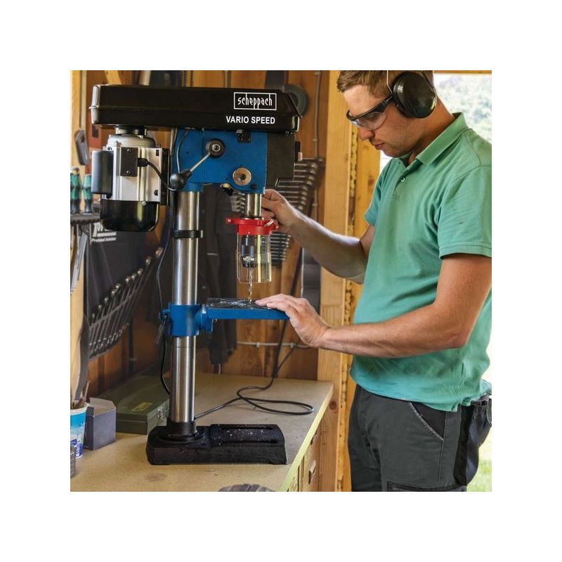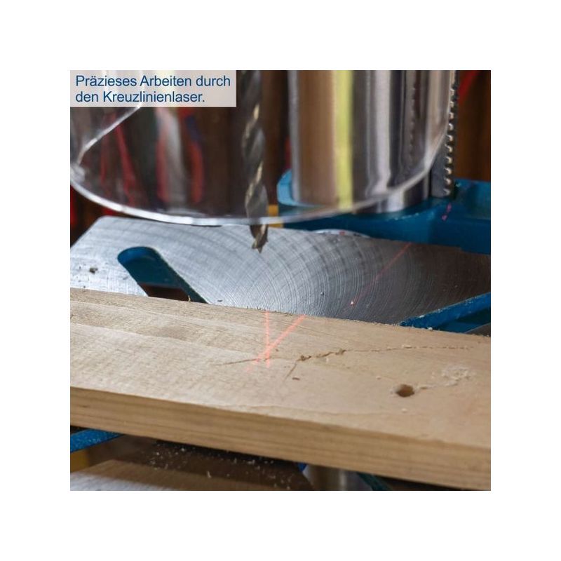 - integrirani laser označava točku bušenja, a stup promjera 60 mm i aluminijsko-lijevana radna ploča dimenzija 198 × 194 mm osiguravaju stabilnost obratka