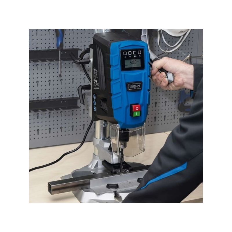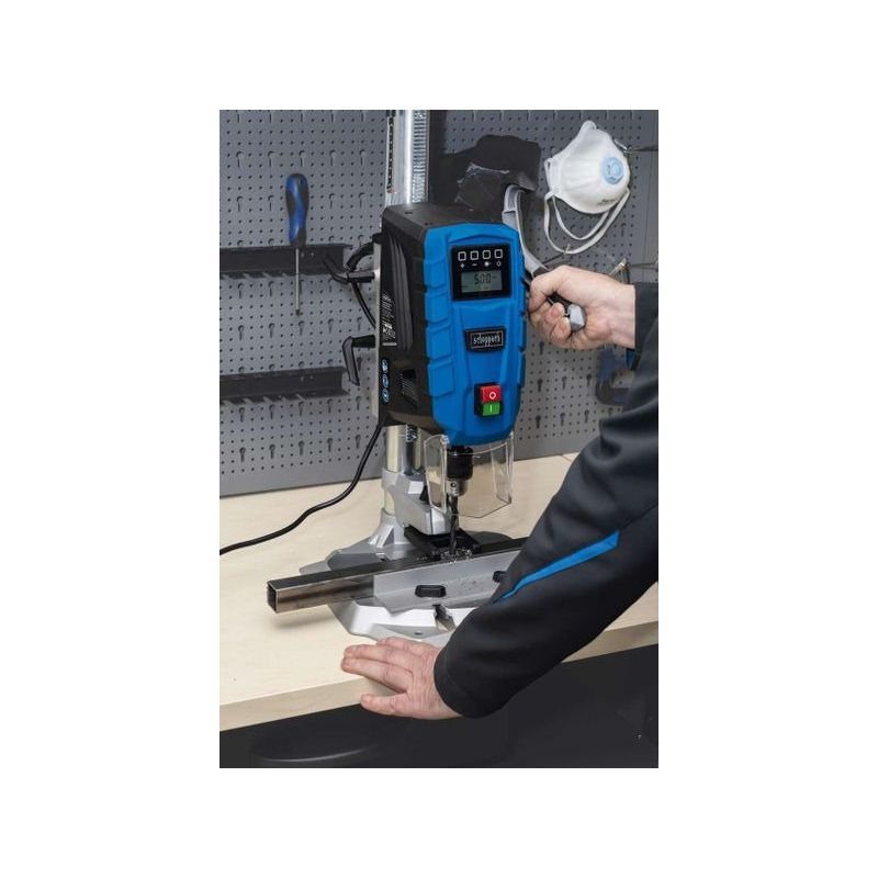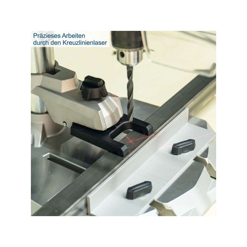 - integrirani laser označava središnju točku bušenja, a aluminijska osnovna ploča dimenzija 320 × 305 mm i stup promjera 46 mm osiguravaju stabilnost tijekom rada