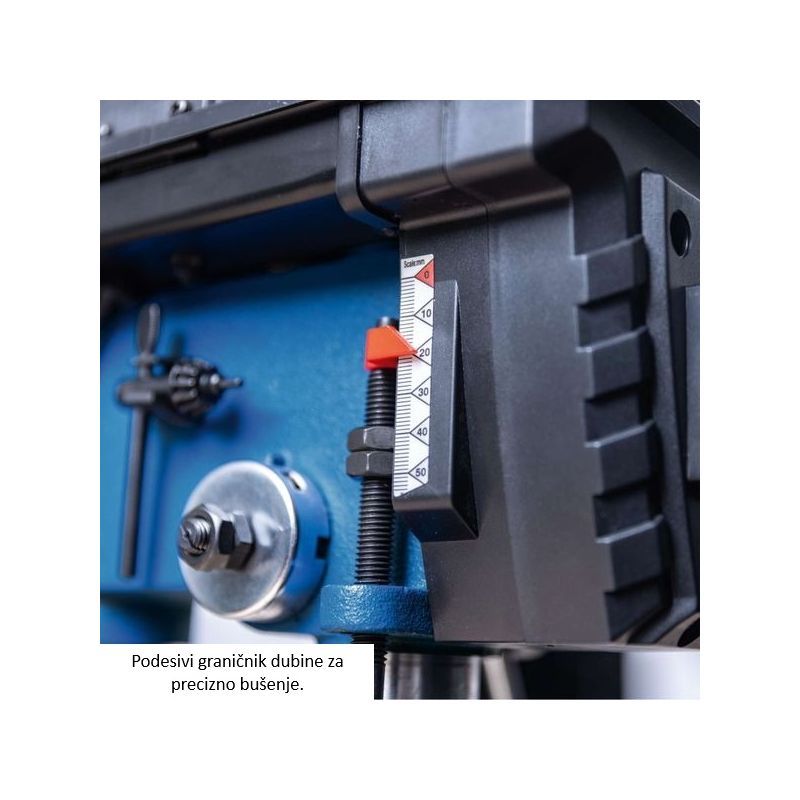 • Dubina bušenja podešava se kontinuirano do 50 mm, uz graničnik za ponavljajuće rupe.
