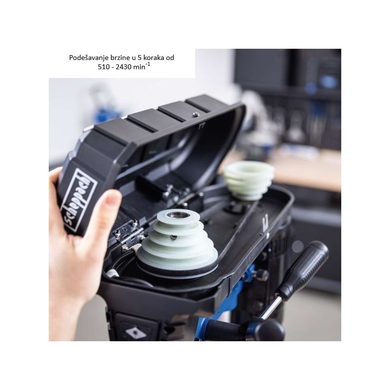 Brzine su u 5 koraka: 510 / 800 / 1300 / 1800 / 2430 o/min. Odabir brzine se radi stupnjevito (prilagodba materijalu i promjeru svrdla): niže brzine za veće promjere i metal, više brzine za manje promjere i drvo/plastiku.