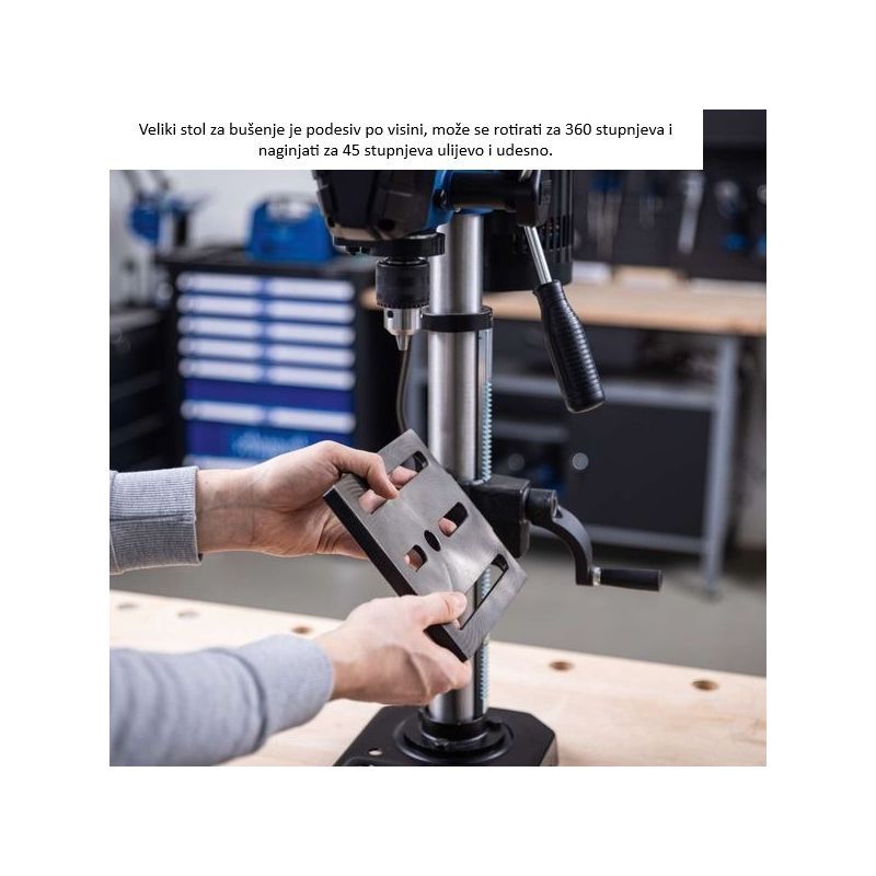 Namijenjena je za precizno bušenje u drvu, metalu/čeliku, aluminiju i plastici. Tipični radovi su serijsko bušenje rupa, bušenje pod kutem (nagib stola), te stabilno bušenje većih komada gdje ručna bušilica gubi preciznost.