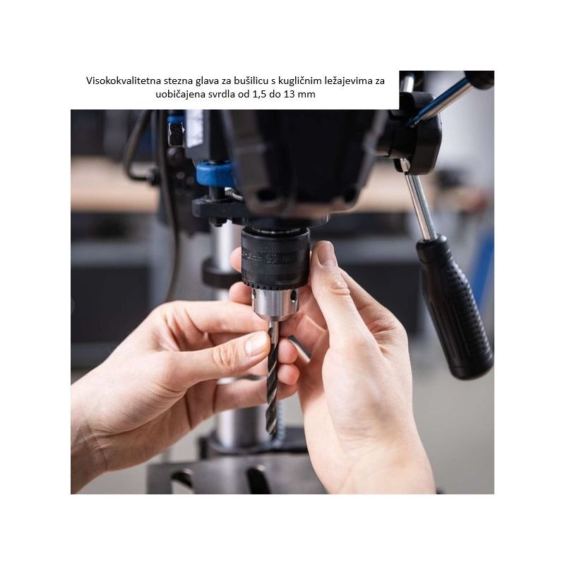 Prihvat stezne glave je B16, a maksimalna veličina svrdla je 13 mm. To pokriva standardna svrdla 1,5–13 mm za većinu radioničkih bušenja u drvu i metalu.