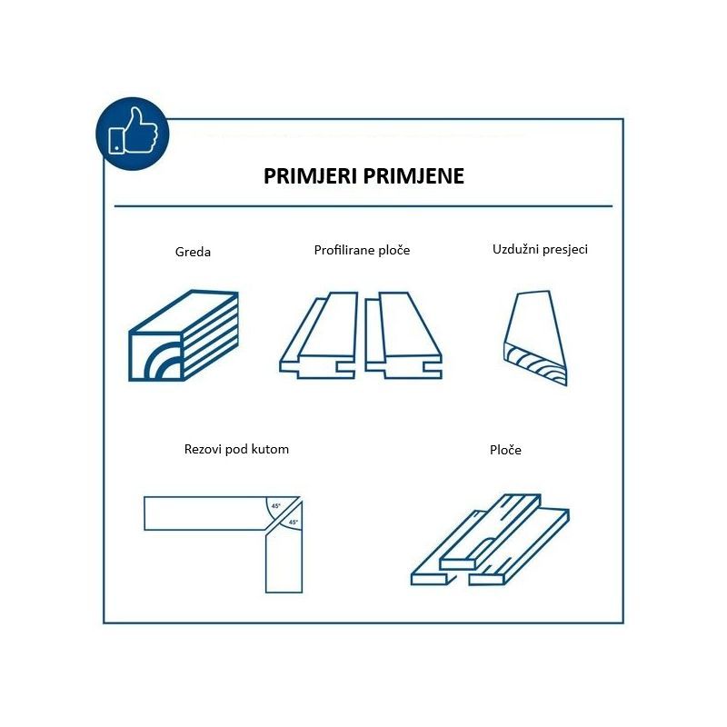 | U kompletu | Uzdužni graničnik, graničnik za poprečno rezanje, potisna palica, list 24 zuba |