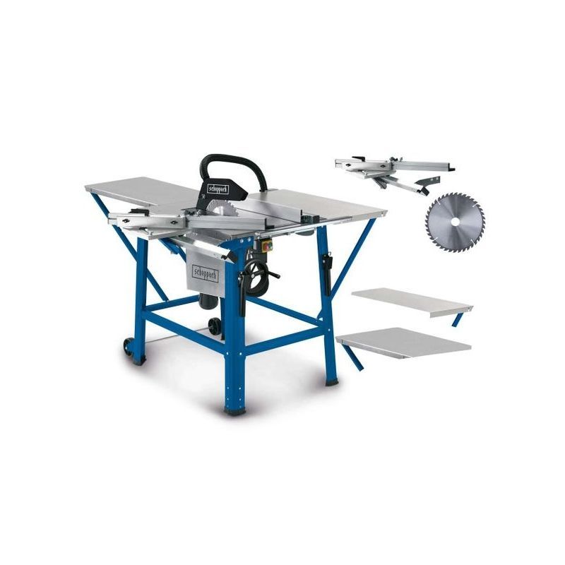 - Robusna stolna pila od 315 mm sa standardnim kliznim stolom, produžetkom/produžetkom stola i drugim listom pile.