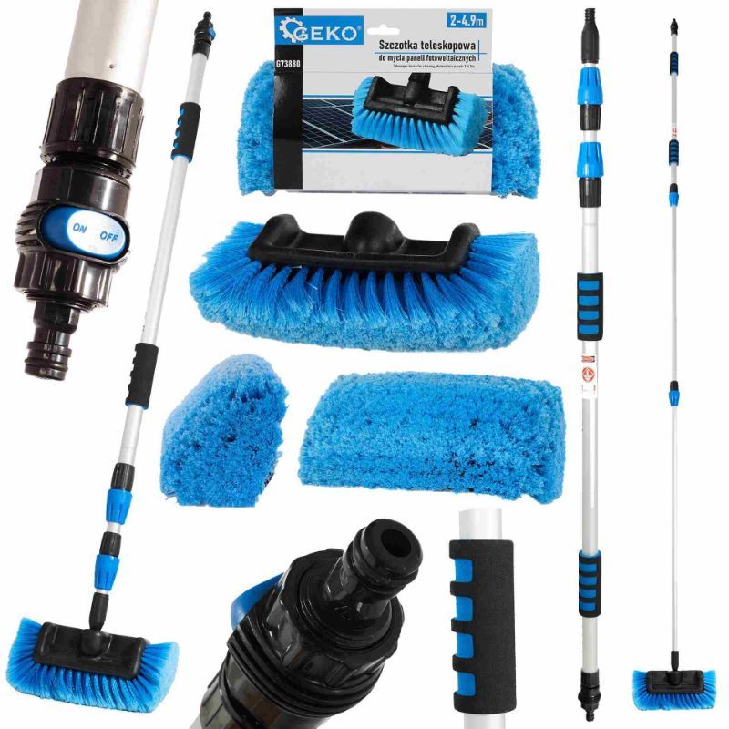 zahvaljujući teleskopskoj dršci koja se proteže od 2 do 4,9 metara, jednostavno doseže i najudaljenije dijelove panela, bez potrebe za ljestvama ili dodatnim alatima