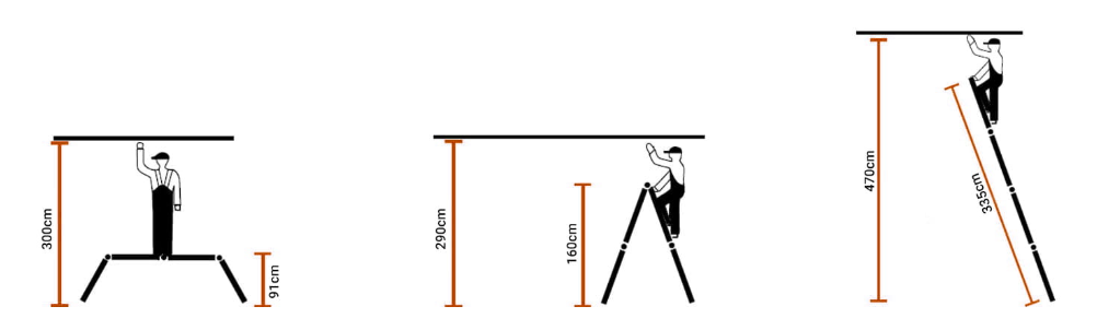 - u setu se nalazi i radna platforma 146 × 30 cm, koja pretvara ljestve u mini skelu ili radni podest za širok spektar poslova - od bojanja zidova, postavljanja rasvjete, pranja vozila, vrtnih radova do servisnih intervencija