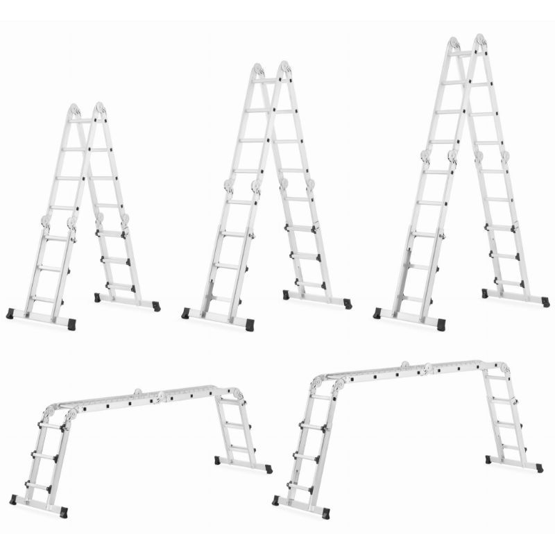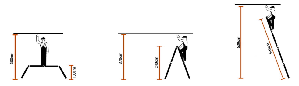 - nudi mogućnost od klasičnih naslonjenih ljestava do samostojećeg položaja, platforme, skele ili rada na stepenicama