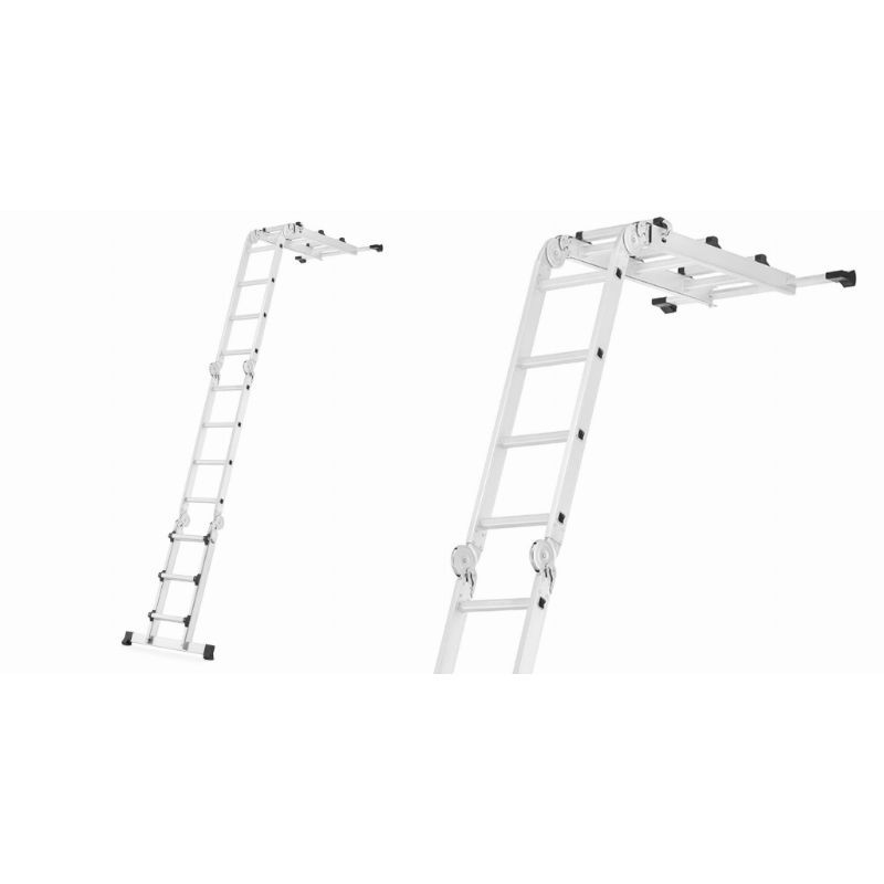 - u kompletu se nalazi i robusna radna platforma dimenzija 200 × 30 cm, idealna za rad na većoj površini, unutarnje radove, bojanje, montažu, servisne intervencije ili kao mini skela