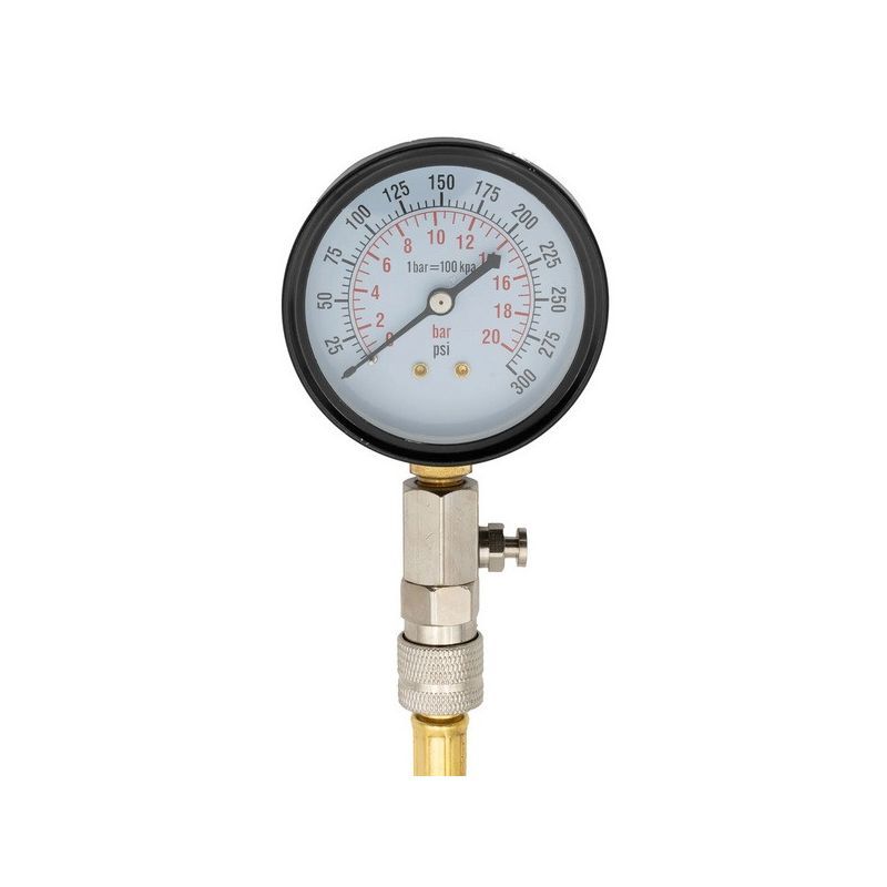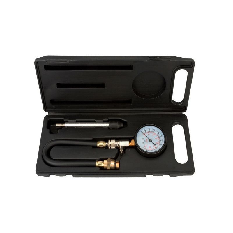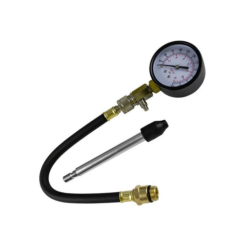 Služi za mjerenje kompresije (tlaka u cilindru) u rasponu 0–20 bar (0–300 PSI) radi brze dijagnostike stanja benzinskog motora. Koristi se kod simptoma poput teškog paljenja, nepravilnog rada, gubitka snage ili sumnje na istrošene klipne prstenove, ventile, brtve ili brtvu glave.