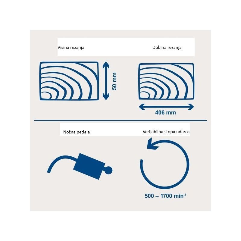 - Brzina hoda je podesiva u rasponu 500–1700 1/min, uz hod lista 12 mm