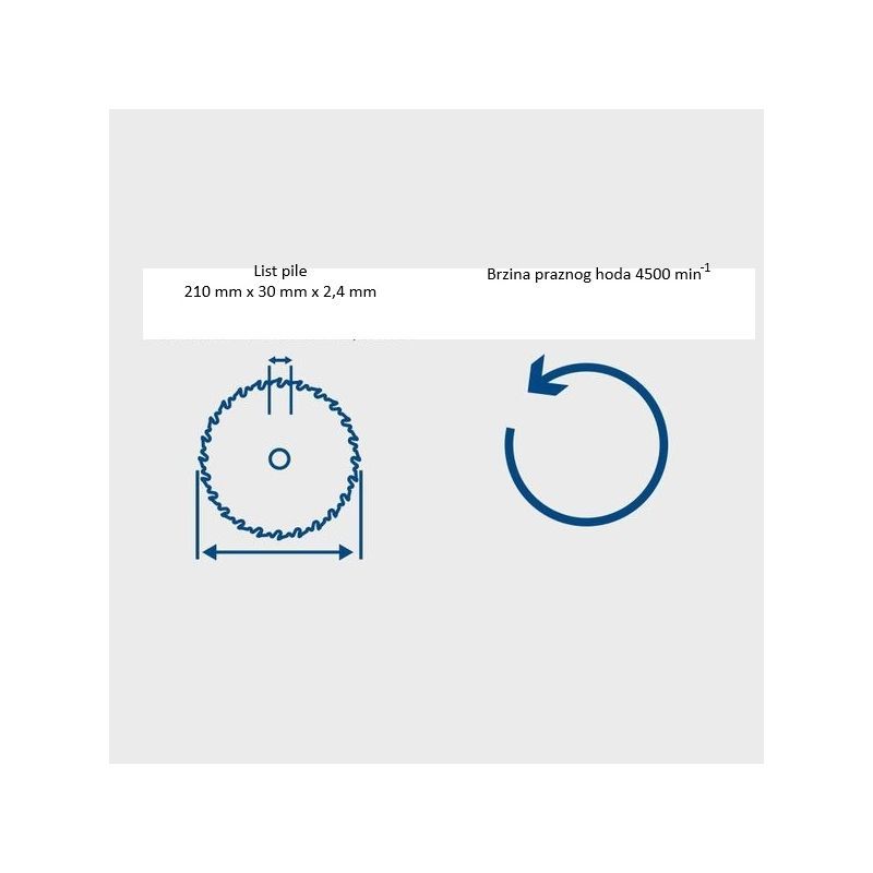 Ugrađeni list je promjera 210 mm s 36 zuba, s provrtom 30 mm. Širina lista je 1,6 mm, a širina zuba 2,4 mm. :contentReference[oaicite:2]{index=2}