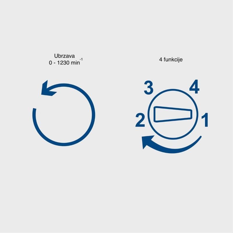 - Maksimalna brzina bez opterećenja iznosi 1230 o/min.