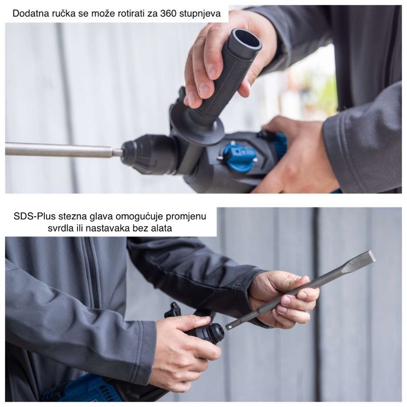 - Stezna glava je SDS-Plus, za izmjenu nastavaka bez alata.