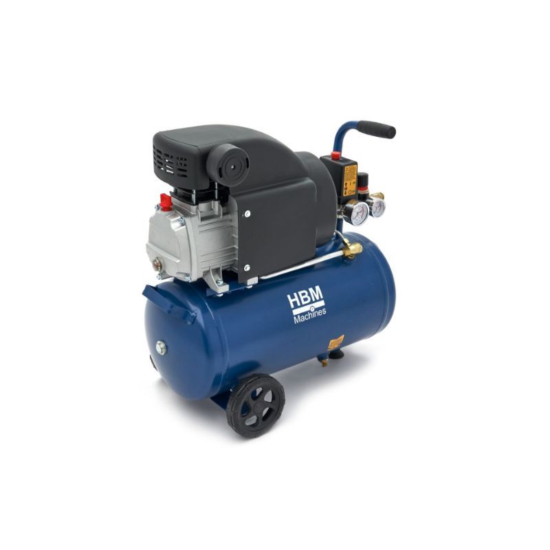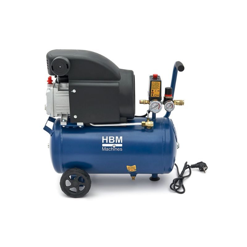 - opremljen motorom od 1,5 KS (1,1 kW) i spremnikom kapaciteta 24 litre, kompresor omogućuje stabilan tlak do 8 bara s brzim punjenjem i učinkovitim radom