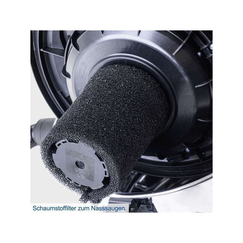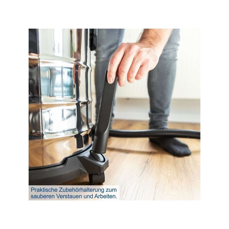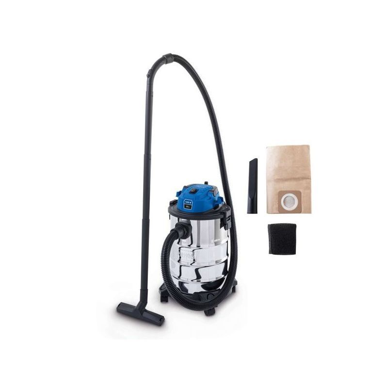 Kompaktni mokro/suhi usisavač s usisnom snagom od 20 kPa i spremnikom od nehrđajućeg čelika kapaciteta 25 litara, idealan za čišćenje prašine, krutih nečistoća i tekućina.